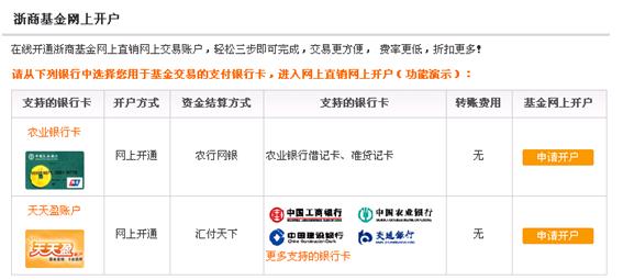 第一步:登陸浙商基金,選擇銀行卡開戶