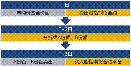 如當(dāng)分級(jí)基金二級(jí)市場(chǎng)整體大幅溢價(jià)時(shí),投資者可以場(chǎng)內(nèi)申購(gòu)基礎(chǔ)份額,并且賣空股指期貨,在T+2日將基礎(chǔ)份額分拆,T+3日賣出分級(jí)份額,并將股指期貨平倉(cāng)。