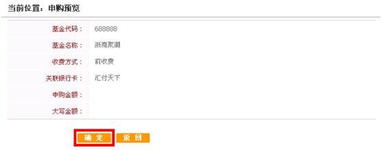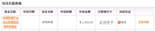 選擇銀行卡(匯付天下“天天盈“賬戶)及輸入申購金額,點擊確定。